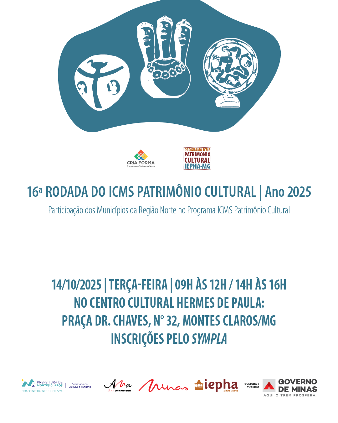 O Instituto Estadual do Patrimônio Histórico e Artístico de Minas Gerais realizará a 16ª Rodada do ICMS Patrimônio Cultural no município de Montes Claros com o tema“Participação dos Municípios da Região Norte no Programa ICMS Patrimônio Cultural” com o objetivo de discutir a participação dos municípios da região no Programa ICMS Patrimônio Cultural e instruir os gestores locais para aprimoramento das políticas públicas locais de proteção e salvaguarda do patrimônio cultural.