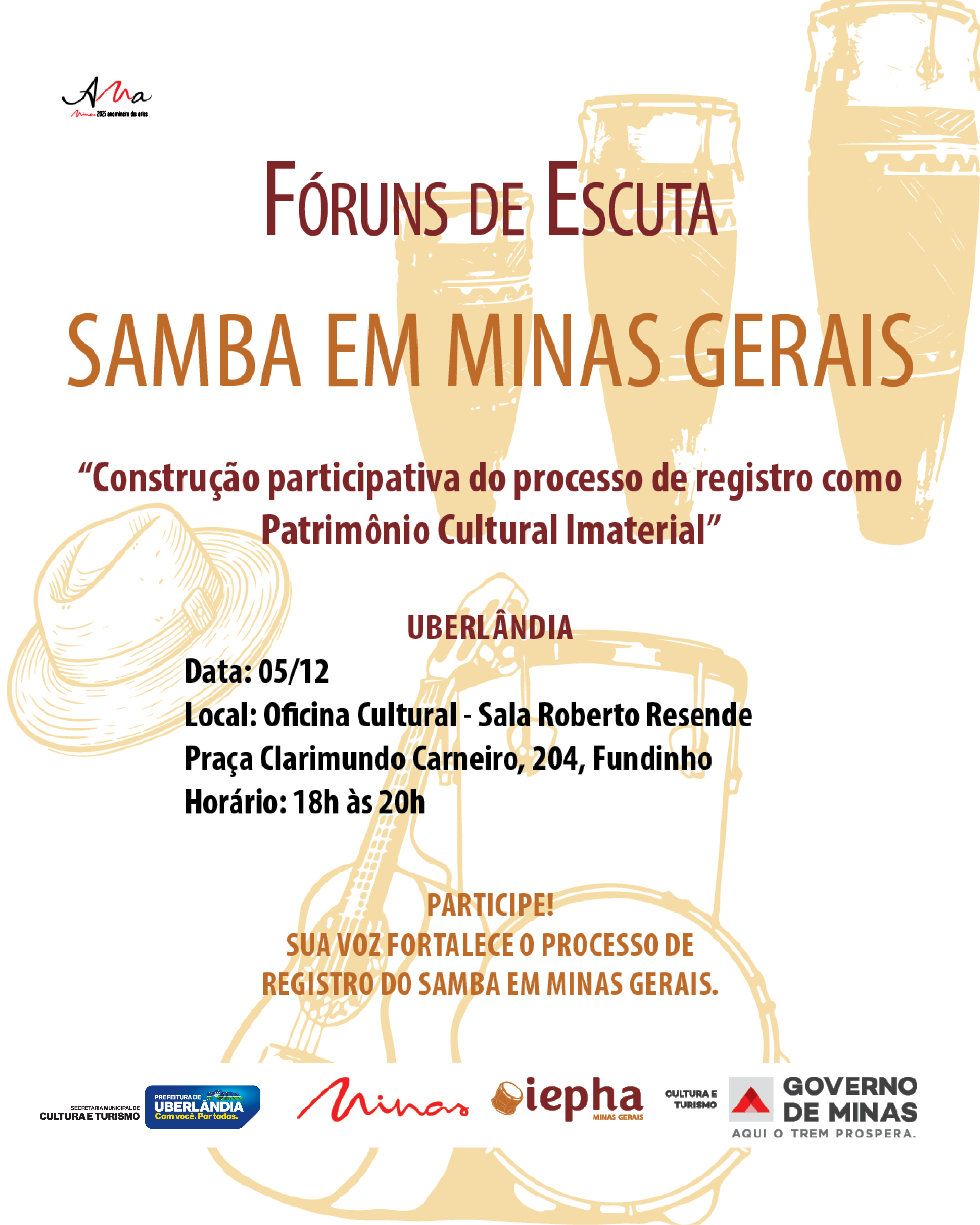 O Instituto Estadual do Patrimônio Histórico e Artístico de Minas Gerais (IEPHA-MG) encontra-se em fase avançada do processo de reconhecimento do samba como Patrimônio Cultural Imaterial do Estado. A iniciativa, que teve início em fevereiro de 2024, a partir de solicitação do coletivo Mestre Conga, representa um marco significativo para a valorização dessa expressão cultural em território mineiro.