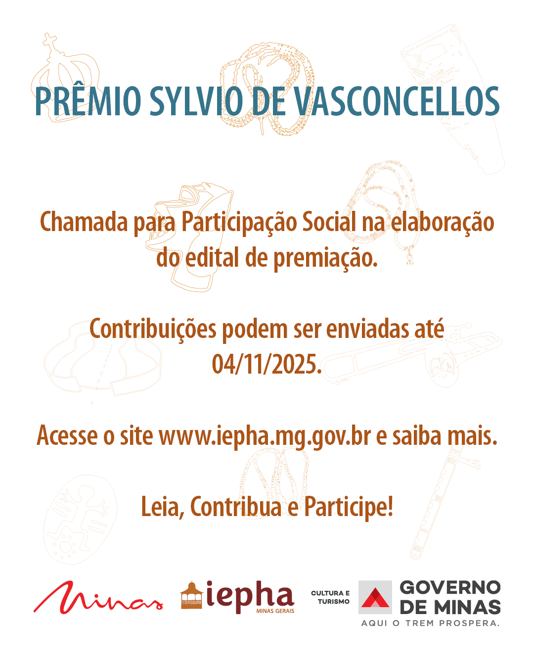 O Instituto Estadual do Patrimônio Histórico e Artístico de Minas Gerais (IEPHA-MG) disponibiliza a minuta do edital de premiação “Prêmio Sylvio de Vasconcellos – 2025”, chamando a sociedade para participação social, voltado ao reconhecimento de boas práticas em patrimônio cultural.