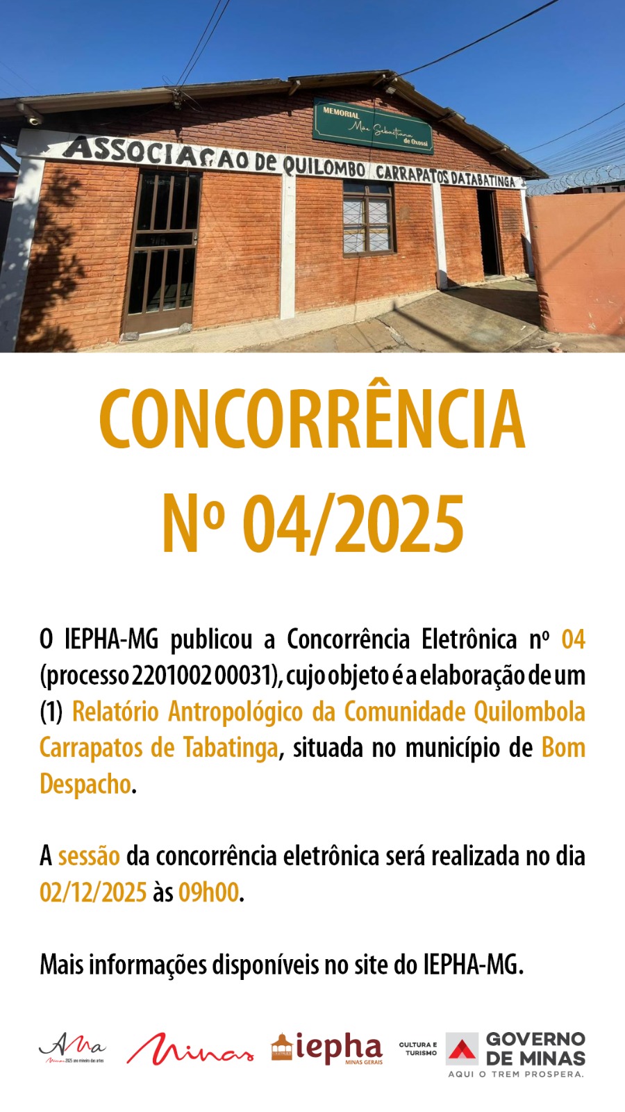 Link Concorrência Eletrônica nº 04/2025 - https://www.iepha.mg.gov.br/index.php/institucional/editais/category/107-concorrencia-eletronica-n-04-2025-edital-completo