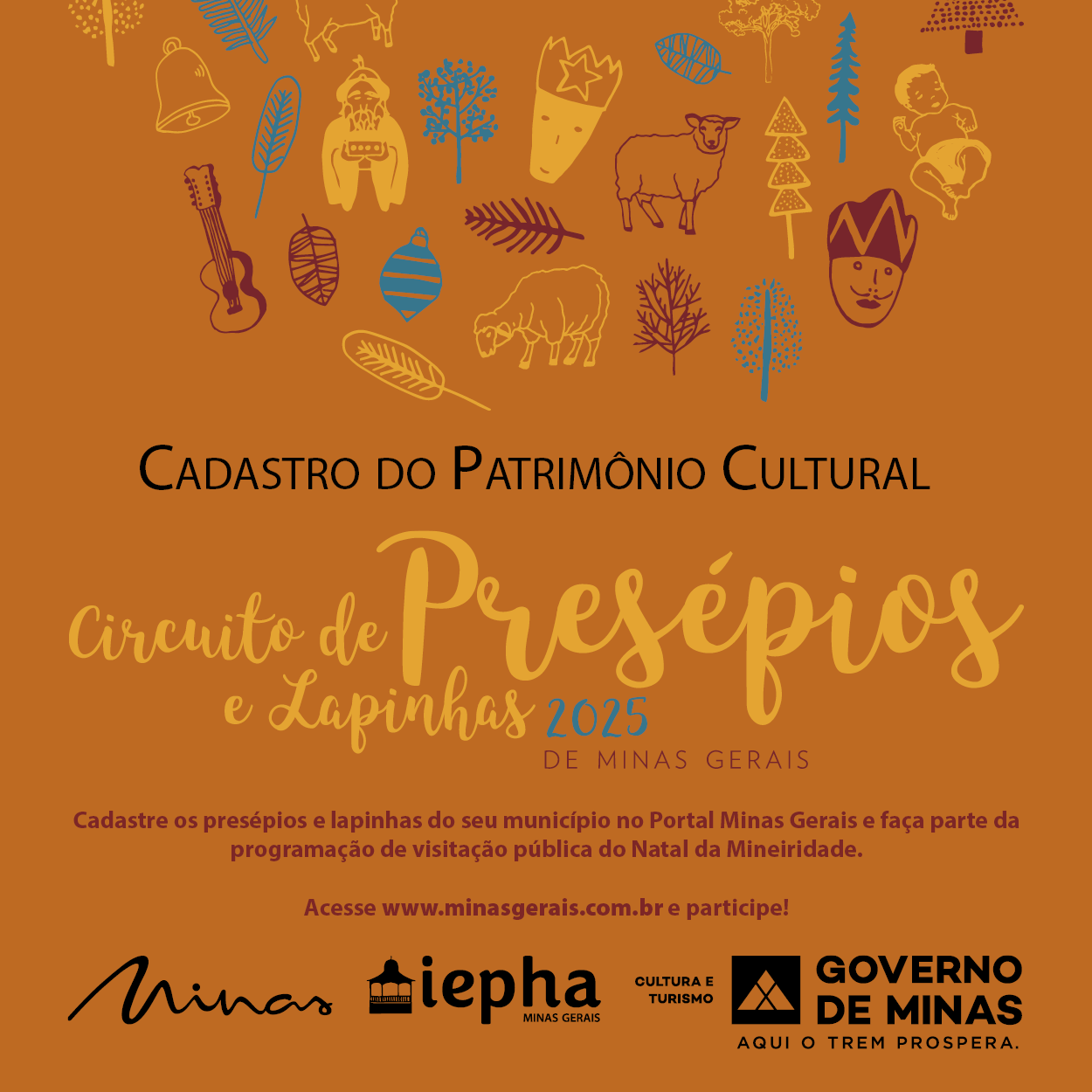 O Cadastro do Circuito de Presépios e Lapinhas de Minas Gerais 2025 está com inscrições abertas até o dia 31/12. As informações encaminhadas serão inseridas na programação do Natal da Mineiridade. A inciativa é da Secretaria de Estado de Cultura e Turismo de Minas Gerais, por meio do Instituto Estadual do Patrimônio Histórico e Artístico de Minas Gerais (IEPHA-MG).